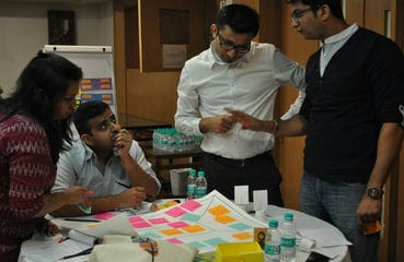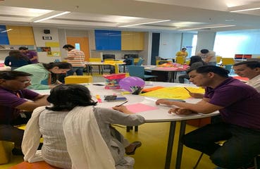 hands-on learning of the design thinking principles, mind-sets, tools,